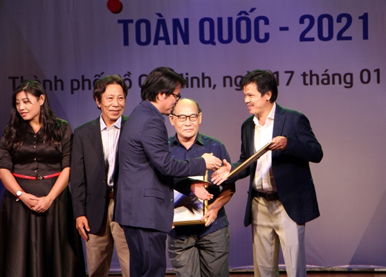 VHO - Liên hoan Kịch nói toàn quốc - 2021 tại TP.HCM đã tổ chức Lễ Tổng kết, bế mạc và trao giải vào tối qua 17.1, tại Nhà hát Cải lương Trần Hữu Trang. Ban tổ chức đã 6 Huy chương Vàng, 5 Bạc và 8 Đồng cho vở diễn. Hạng mục Diễn viên có 40 Huy chương Vàng, 46 Bạc và 19 Đồng. Ngoài ra, Liên hoan còn trao các giải tác giả, đạo diễn, nhạc sĩ, họa sĩ xuất sắc nhất; giải thiết kế trang phục xuất sắc và giải thí sinh nhỏ tuổi nhất. Thứ trưởng Bộ VHTTDL Tạ Quang Đông, Trưởng Ban Chỉ đạo Liên hoan tham dự và phát biểu bế mạc.