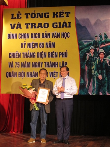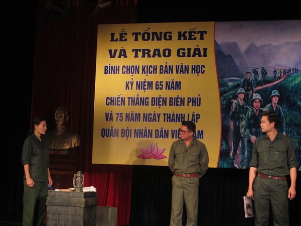 Hai kịch bản Đôi mắt và Mối tình Điện Biên đã giành giải A cuộc thi bình chọn kịch bản văn học kỷ niệm hai ngày trọng đại của dân tộc là 65 năm Ngày Chiến thắng Điện Biên Phủ và 75 năm Ngày thành lập Quân đội nhân dân Việt Nam diễn ra sáng nay 26.12 tại Hà Nội. Nhiều tác giả và nghệ sĩ, lãnh đạo các nhà hát, đơn vị nghệ thuật thuộc trung ương và Hà Nội đã vô cùng xúc động chia xẻ những cảm xúc về việc tôn vinh những kịch bản văn học sân khấu Việt Nam đã được thời gian thử thách bằng những đêm diễn cũng như nhiều nội dung còn nguyên giá trị thời đại, những con người, số phận, tính cách, những biến cố và cách xử lý vấn đề, sự việc vẫn đang hiện hữu đối với đời sống xã hội hiện tại.