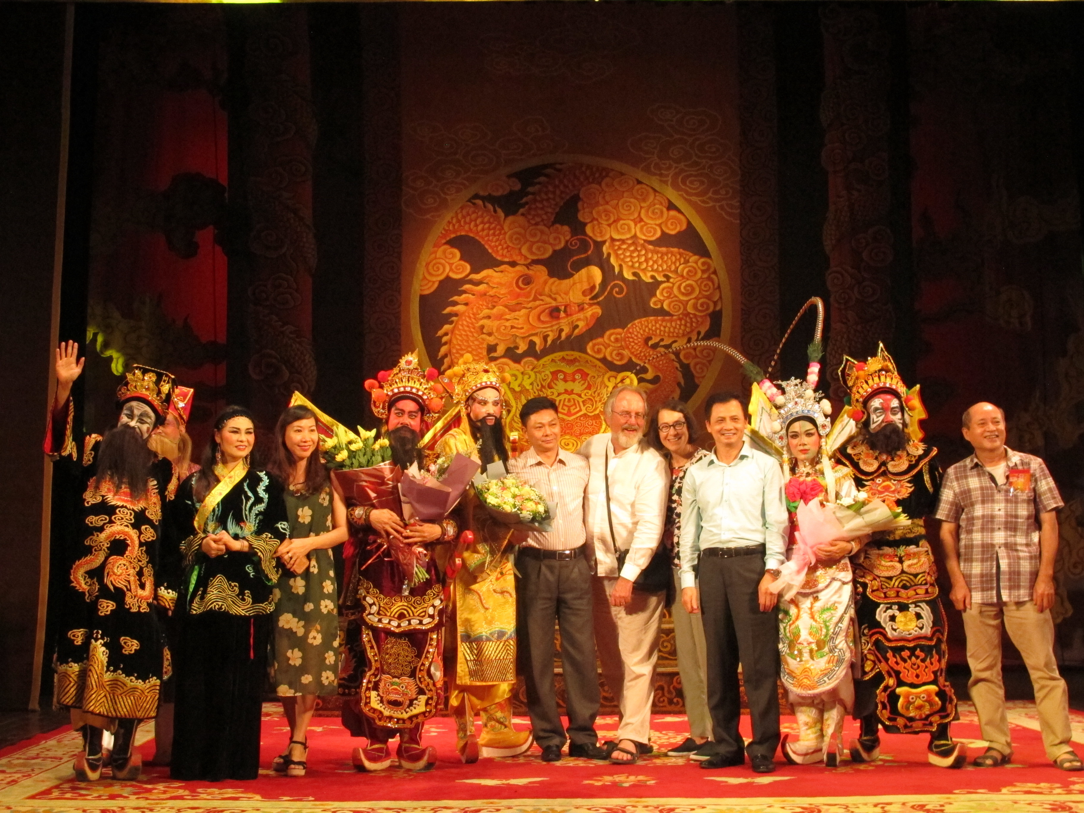 Ông Jeff von der Schmidt, Nhạc trưởng người Pháp, chụp ảnh lưu niệm cùng các nghệ sĩ Nhà hát Tuồng VN