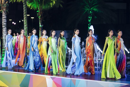 Các thí sinh tự tin với trang phục áo dài truyền thống tại phần thi Top Model