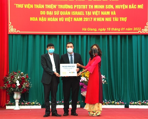 VHO- Sáng ngày 18.1, đoàn công tác của Đại sứ quán Israel tại Việt Nam do ngài Nadav Eshcar, Đại sứ đặc mệnh toàn quyền, Đại sứ quán Israel tại Việt Nam làm trưởng đoàn và Hoa hậu Hoàn vũ Việt Nam 2017 H’Hen Niê phối hợp với UBND tỉnh Hà Giang tổ chức khai trương “Thư viện thân thiện" tặng các học sinh của Trường PTDTBT Tiểu học xã Minh Sơn, huyện Bắc Mê, tỉnh Hà Giang.