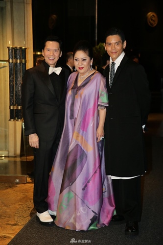 Vợ chồng Hướng Hoa Cường trong đám cưới năm 2019 của con trai, Hướng Tả và con dâu - nữ diễn viên Quách Bích Đình.