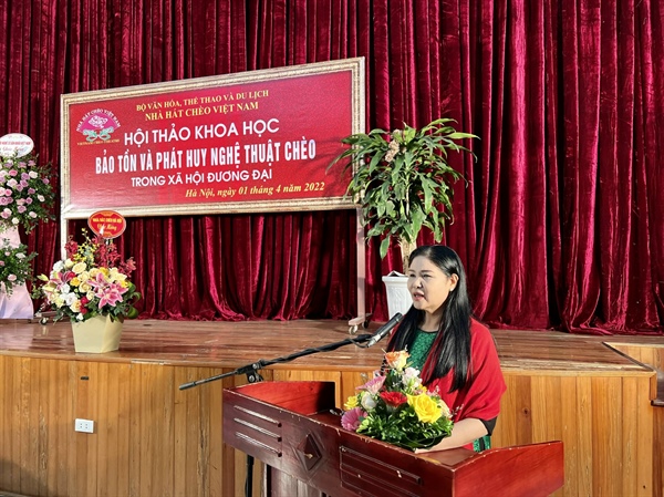 Giám đốc Nhà hát Chèo Việt Nam, NSND Thanh Ngoan phát biểu tại Hội thảo