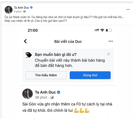Bài đăng của Anh Đức đã bị gỡ sau khoảng 1 giờ đăng