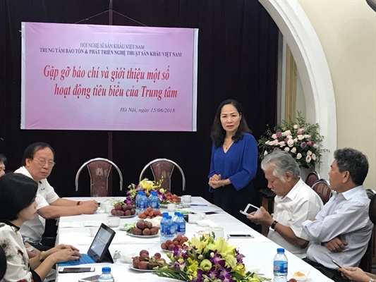 NSND Trịnh Thuý Mùi trong một cuộc trao đổi với báo chí
