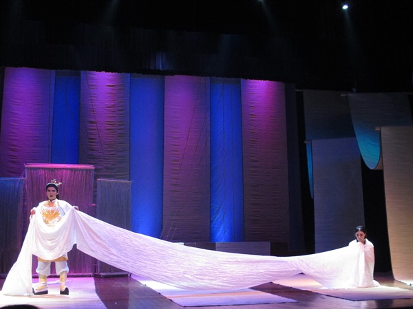 "Tôi muốn khán giả bước vào thánh đường sân khấu và không gian của vở không chỉ nhìn mà còn cảm nhận được mùi rơm rạ, của cói, rất thuần Việt. Tôi nghĩ rằng mình làm thế này không giống bất cứ một vở diễn nào về hai cụ trước đó"- đạo diễn Hoàng Quỳnh Mai chia sẻ. Quả thực, thành công lớn nhất của vở diễn chính là phương diện dàn dựng nghệ thuật. Hình ảnh chiếu cói đã khắc sâu trong bài thơ nổi tiếng của Nguyễn Trãi “Ghẹo cô hàng chiếu”. Từ bài thơ này và xuất thân của bà Thị Lộ là cô bán chiếu gon, đạo diễn đã thực sự tung hoành sáng tạo với chất liệu cói và hình tượng chiếc chiếu cói xuất hiện xuyên suốt toàn bộ tác phẩm. Có lúc cả hệ thống trang trí sân khấu được dùng bằng những dải chiếu cói dài tạo nên màu đen của quyền lực hắc ám, lúc lại trở thành vườn vải Lệ Chi Viên, lúc lại diễn tả triều đình… Có thể nói việc xử lý chiếu cói là một cách thể hiện rất đắt trong phương pháp dàn dựng và xử lý sân khấu của đạo diễn.