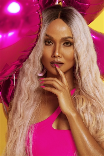 Gam màu hồng vốn rất kén người mặc nhưng khi diện lên người, giúp tôn vinh làn da khỏe khoắn, đặc trưng của H’Hen Niê. Ảnh: Milor Trần.