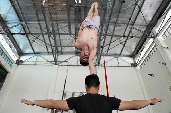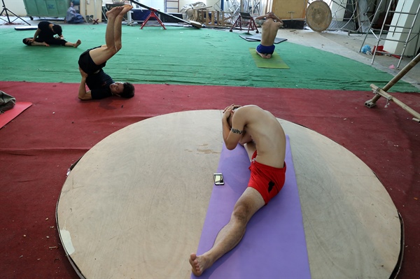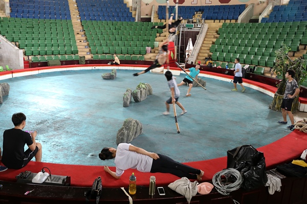 Trước mỗi buổi tập các nghệ sĩ xiếc luôn phải khởi động các cơ, nhằm đảm bảo sự dẻo dai cũng như an toàn trong buổi tập