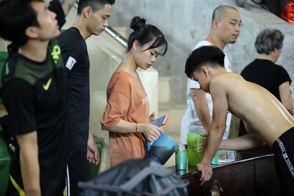 Những ca nước đá giải nhiệt luôn được chuẩn bị sẵn sàng bên ngoài sân khấu chính