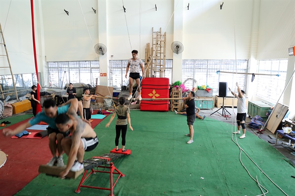 Hà Nội: Nghệ sĩ xiếc khổ luyện dưới thời tiết nóng như đổ lửa