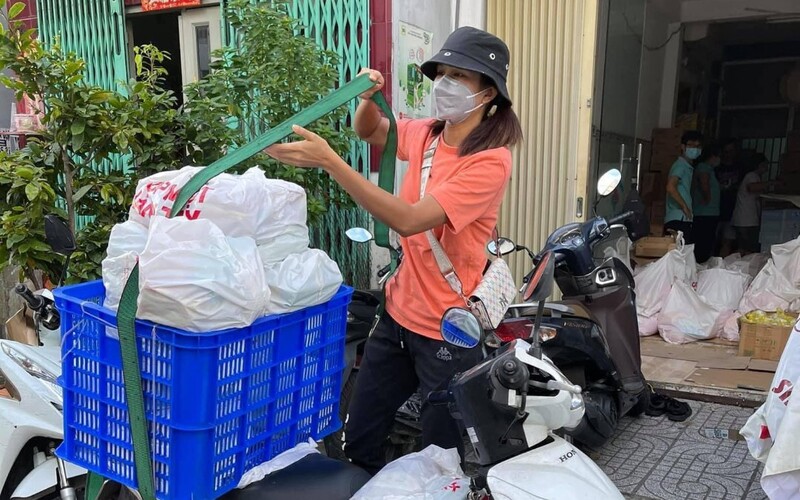 Nàng hậu ăn mặc giản dị để đi giao hàng cho người dân khu phong tỏa