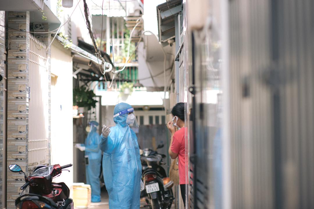 Cô nàng tận tình hướng dẫn người dân trong khu phong tỏa về việc xét nghiệm Covid-19