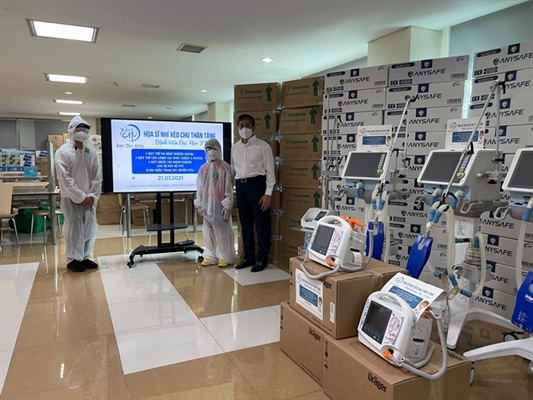 Số tiền này đã được dùng để mua trang thiết bị y tế, gồm máy thở, máy shock tim, đồ bảo hộ, khẩu trang N95, để gửi đến Bệnh viện Đại học Y Dược TPHCM, ủng hộ phòng chống dịch Covid-19.