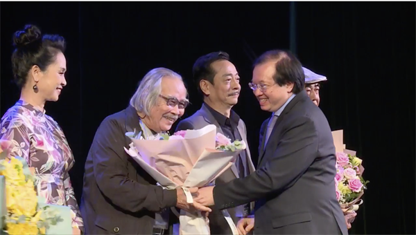 Thứ trưởng Bộ VHTTDL Tạ Quang Đông tặng hoa cho các thành viên trong Hội đồng giám khảo Cuộc thi