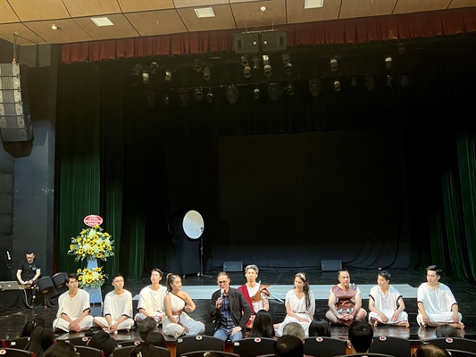 Đạo diễn, NSƯT Trần Lực và ê kíp dàn dựng trao đổi với khán giả sau khi kết thúc vở