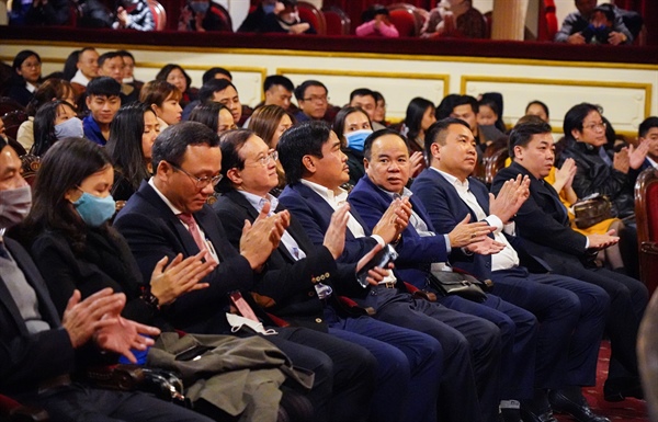 Thứ trưởng Bộ Tạ Quang Đông và các đại biểu tham dự buổi công diễn vở kịch Như thế là tội ác