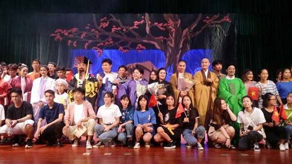 Sinh viên Trung Quốc chúc mừng các nghệ sĩ sau suất diễn vở Huyền thoại Gò rồng ấp