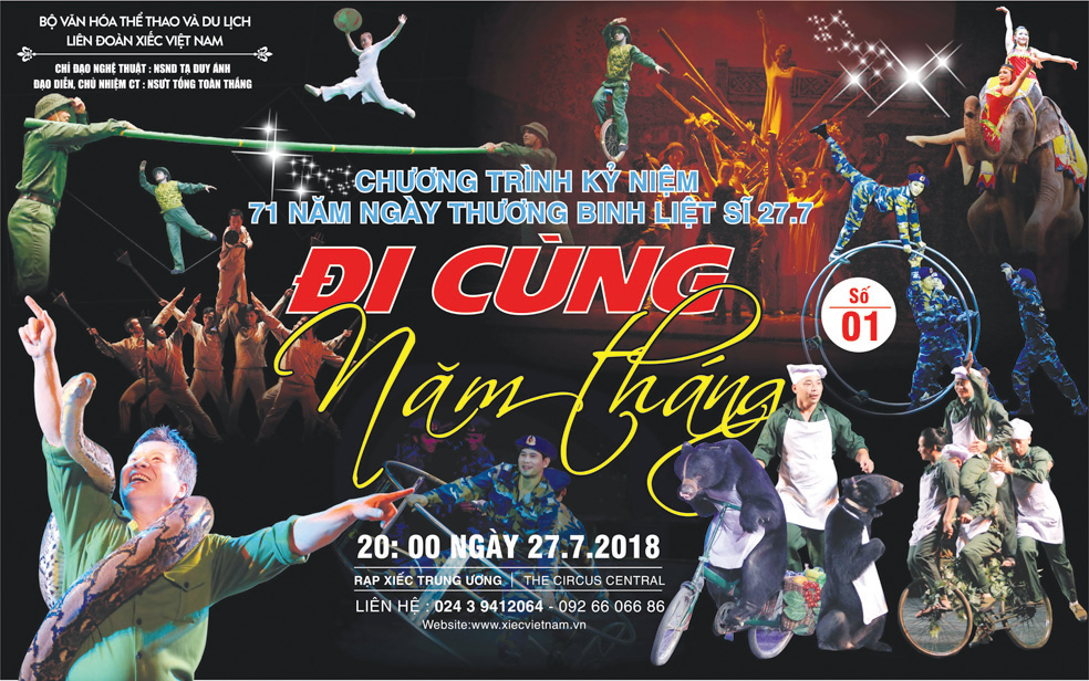 Đi cùng năm tháng do NSƯT Tống Toàn Thắng viết kịch bản và dàn dựng với sự tham gia của các nghệ sĩ thuộc 4 đoàn biểu diễn của Liên đoàn Xiếc Việt Nam. NSND Tạ Duy Ánh, Giám đốc Liên đoàn Xiếc Việt Nam, chỉ đạo nghệ thuật chương trình cho biết, đây là lần đầu tiên đơn vị xây dựng một chương trình nghệ thuật tri ân các AHLS, những người có công với cách mạng và cũng là dịp để giáo dục cho thế hệ trẻ hôm nay về truyền thống yêu nước, truyền thống anh hùng bất khuất của cha anh.