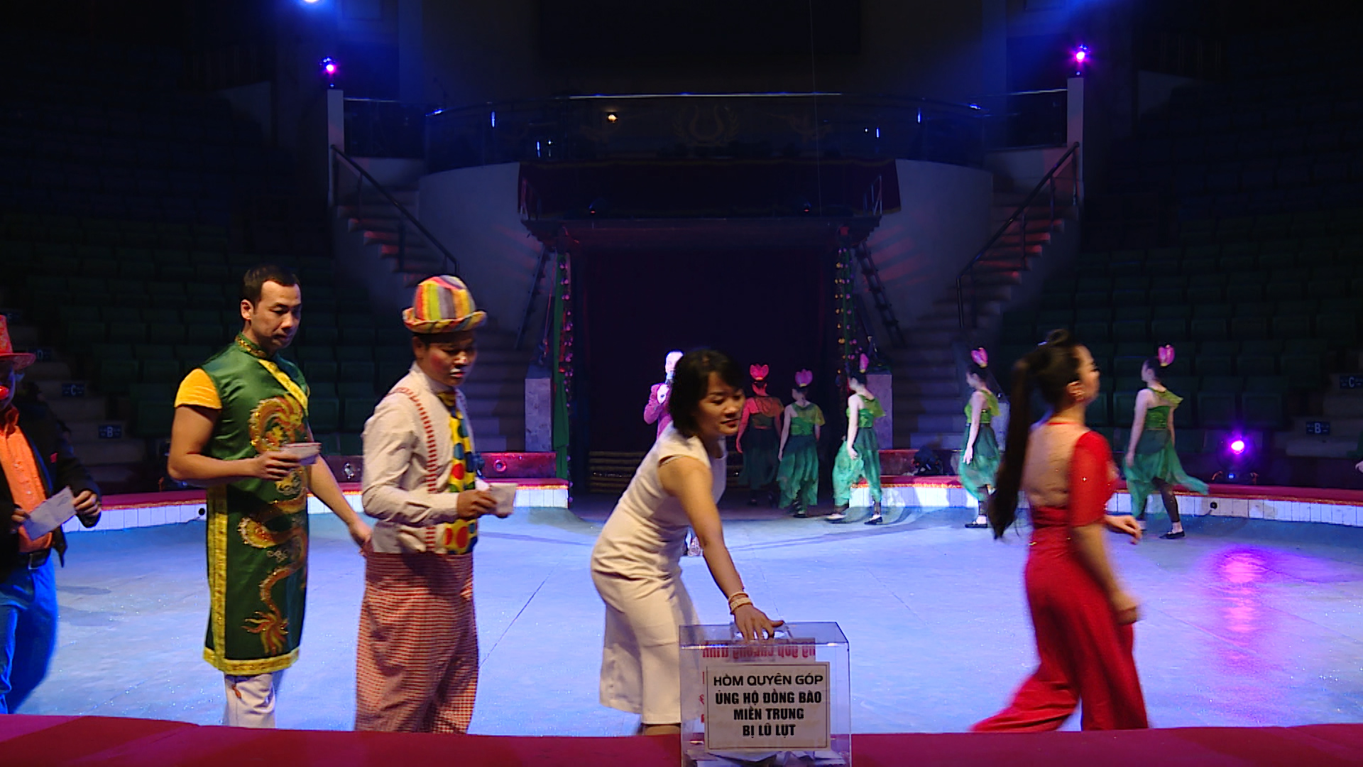 Phó giám đốc Liên đoàn Xiếc VN, NSND Tống Toàn Thắng cho biết: “Cán bộ, nghệ sĩ của Liên đoàn Xiếc Việt Nam vô cùng cảm động khi có rất nhiều phụ huynh cho các con xuống bỏ tiền vào hòm quyên góp. Chương trình nghệ thuật xiếc diễn ra với một tâm thế rất đặc biệt là hướng về miền Trung ruột thịt, chia sẻ với đồng bào đang chịu ảnh hưởng thiên tai, lũ lụt. Ngay sau buổi biểu diễn, Liên đoàn Xiếc Việt Nam sẽ niêm phong số tiền thu được và gửi về Công đoàn Bộ VHTTDL để mang “tấm lòng” của những người công tác trong ngành VHTTDL cũng như cả những nhà tài trợ, những khán giả đến xem nghệ thuật… tới các cơ quan có trách nhiệm để giúp đỡ và chia sẻ kịp thời với người dân miền Trung”.