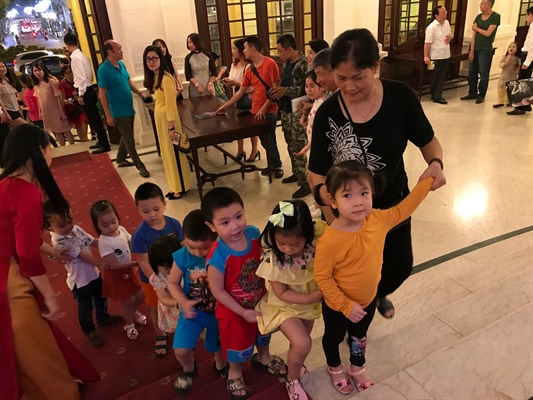 Khán giả thiếu nhi hân hoan xem chương trình của Nhà hát Múa rối VN tại Nhà hát Lớn Hà Nội