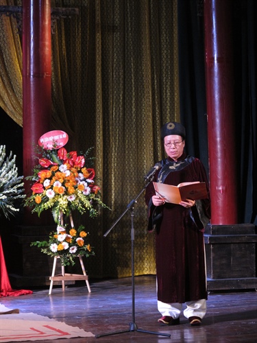 NSND Lê Tiến Thọ, Chủ tịch Hội Nghệ sĩ Sân khấu VN đọc chúc văn tại lễ dâng hương