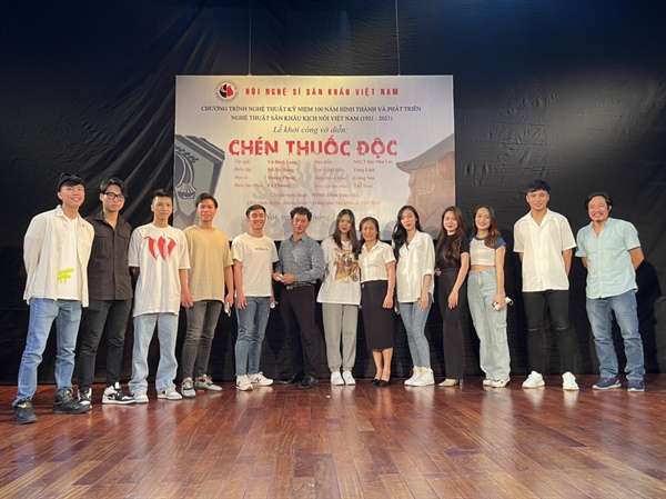 VHO- Ngày 1.10, Hội Nghệ sĩ Sân khấu Việt Nam cùng các đơn vị Nhà hát Kịch Việt Nam, Nhà hát Kịch Hà Nội, Nhà hát Tuổi Trẻ... đã cùng khởi công vở kịch Chén thuốc độc. Đây là lần đầu tiên, các diễn viên của nhiều nhà hát cùng kết hợp với nhau trên một sân khấu nhân dịp trọng đại - kỷ niệm 100 năm hình thành và phát triển nghệ thuật sân khấu kịch nói Việt Nam. Với những người theo nghiệp sân khấu thì được đi diễn là hạnh phúc, được diễn trong vở kịch kỷ niệm 100 năm sân khấu kịch là niềm tự hào.
