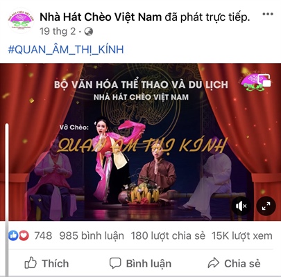 Fanpage của Nhà hát Chèo Việt Nam đã trở thành địa chỉ yêu thích của nhiều khán giả bên cạnh chiếu chèo ở Nhà hát Chèo Việt Nam ở 71 Kim Mã, Hà Nội