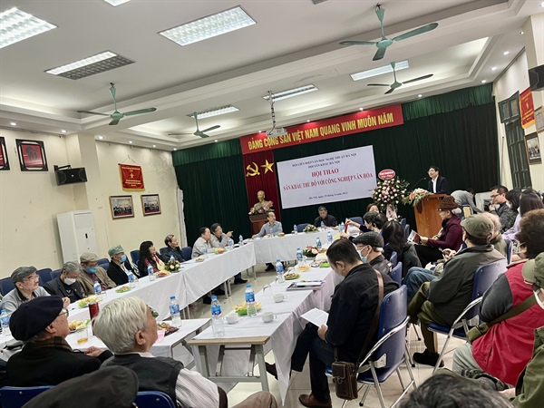 Phát biểu tại hội thảo, NSND Trần Quốc Chiêm, Chủ tịch Hội Liên hiệp văn học nghệ thuật Hà Nội cho rằng, đây là cuộc hội thảo cần thiết với sự phát triển của văn học, nghệ thuật Thủ đô. Theo NSND Trần Quốc Chiêm, nghệ thuật biểu diễn đóng vai trò quan trọng trong đời sống xã hội và là một bộ phận cốt lõi của công nghiệp văn hóa. Phát triển công nghiệp sân khấu cần chú trọng cả 3 khu vực: Sáng tạo tác phẩm ( tác giả, đạo diễn); công nghiệp sản xuất (tác phẩm, đội ngũ diễn viên, công nghệ kỹ thuật :ánh sáng, âm thanh, thiết kế mỹ thuật…); công nghiệp kinh doanh ( tổ chức biểu diễn, marketing, phát triển thị trường...) Theo nhận định của ông, nhiều đơn vị nghệ thuật ở Hà Nội vẫn đang loay hoay chưa tiếp cận được với sự phát triển công nghiệp văn hóa.