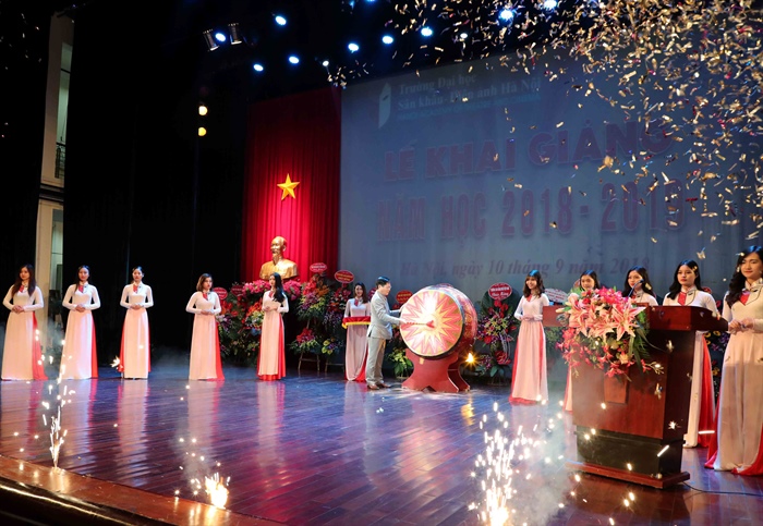 Phát biểu tại Lễ Khai giảng, PGS.TS Nguyễn Đình Thi, Hiệu trưởng Trường Đại học Sân khấu – Điện ảnh Hà Nội cho biết, kỳ thi tốt nghiệp năm học vừa qua đã để lại ấn tượng tốt đẹp với số sinh viên tốt nghiệp đạt loại khá giỏi chiếm 74%. Kỳ thì tuyển sinh đại học vừa qua, Trường đã tuyển đủ chỉ tiêu ở hầu hết các ngành, chuyên ngành đào tạo. Số lượng thí sinh trúng tuyển tăng 20% so với năm 2017 -2018. Tại Lễ khai giảng, lãnh đạo nhà trường đã trao tặng bằng khen và tôn vinh những giáo viên, học sinh, sinh viên có thành tích xuất sắc trong giảng dạy và học tập. Rất nhiều những giải thưởng của các thầy cô giáo và học sinh, sinh viên của Trường tại các cuộc thi, liên hoan các chuyên ngành nghệ thuật trong nước và quốc tế đã được giới chuyên môn đánh giá cao.