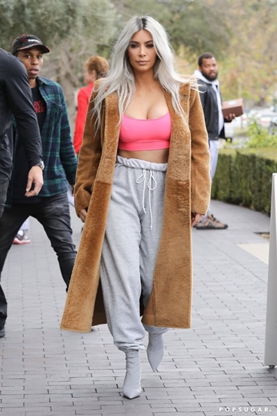 Áo hở eo, bốt cao gót và áo khoác oversize, Kim Kardashian quả là biết cách chinh phục chiếc quần đơn giản.