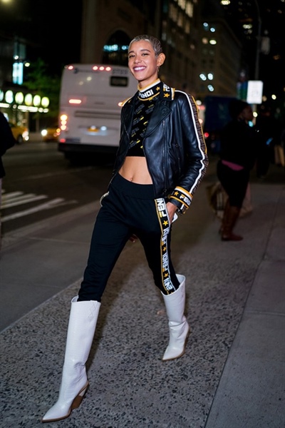 Đôi combat boot cùng chiếc áo khoác dáng lửng của Bella Hadid đã nâng chiếc quần thể thao đơn giản của cô lên một tầm cao mới. Cũng phải nói thêm là vóc dáng quá chuẩn của người đẹp đã giúp cô chinh phục tất cả các item dễ dàng hơn.