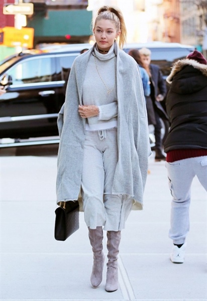 Mặc cả bộ thể thao tưởng như xuề xòa, nhưng chiếc áo dài khoác dài chấm đất đã chứng minh Gigi Hadid không hề coi nhẹ hình tượng chút nào.
