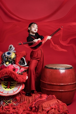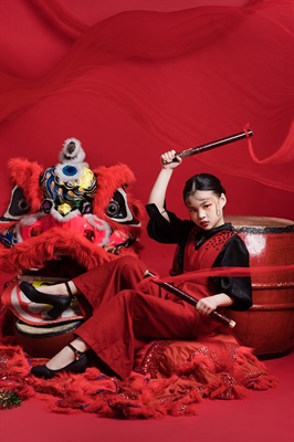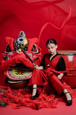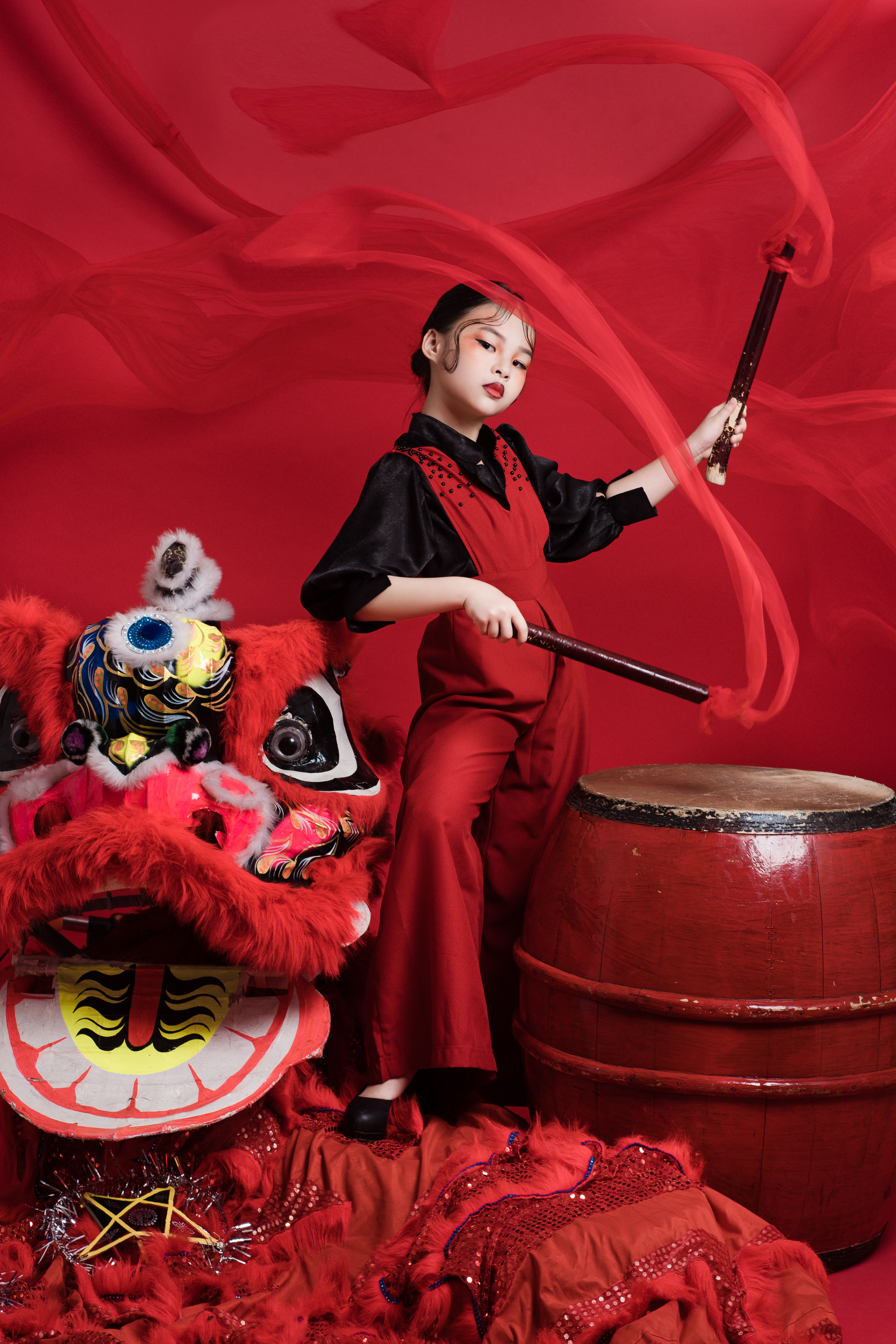Lấy cảm hứng với màu đỏ chủ đạo cho mùa Trung thu, những shoot hình của mẫu nhí 8 tuổi đã mang đến không khí tưg bừng