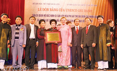 Bà Katherine Muller - Marin trong lễ trao bằng công nhận dân ca Quan họ Bắc Ninh là di sản văn hóa phi vật thể đại diện của nhân loại