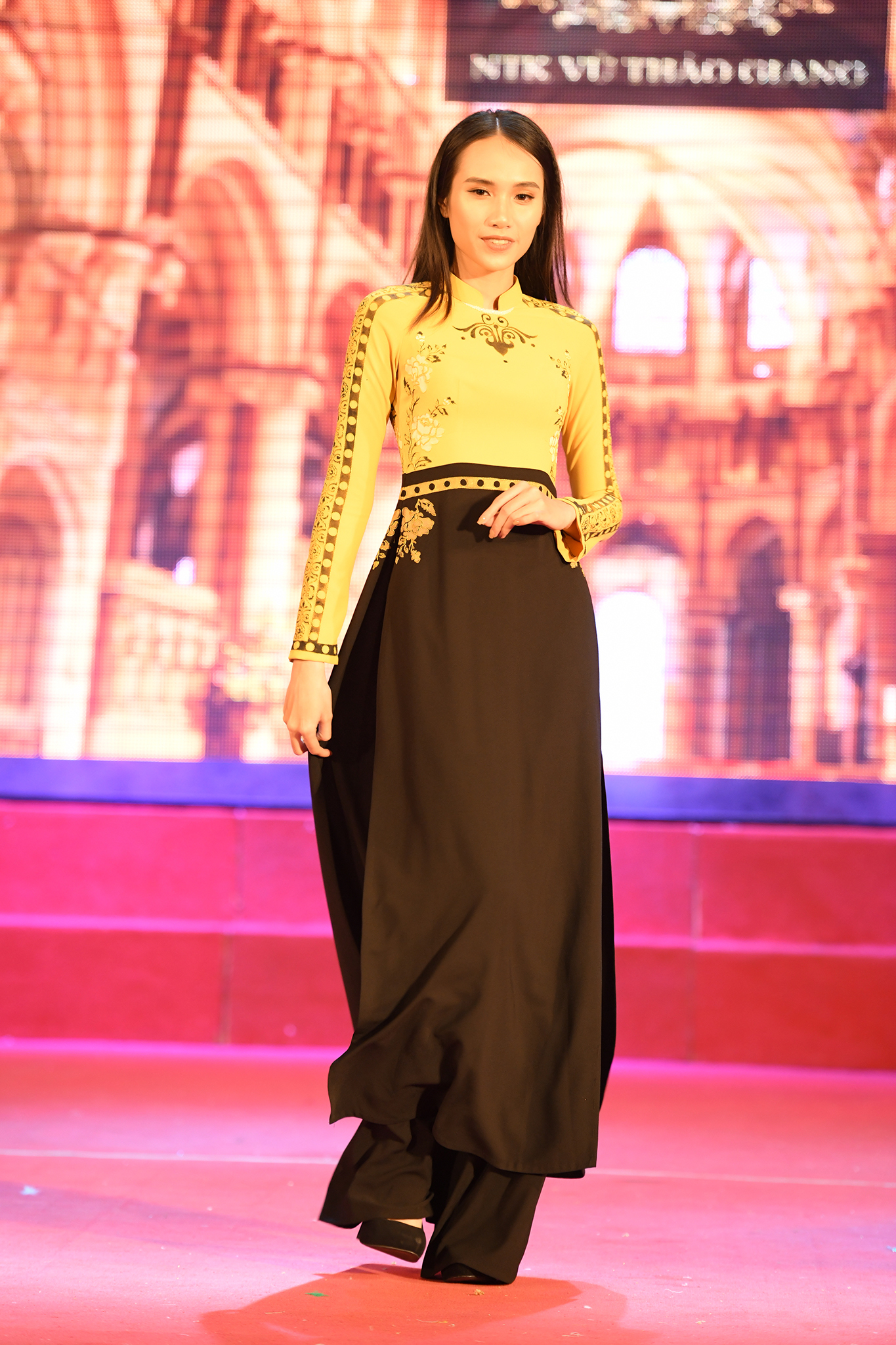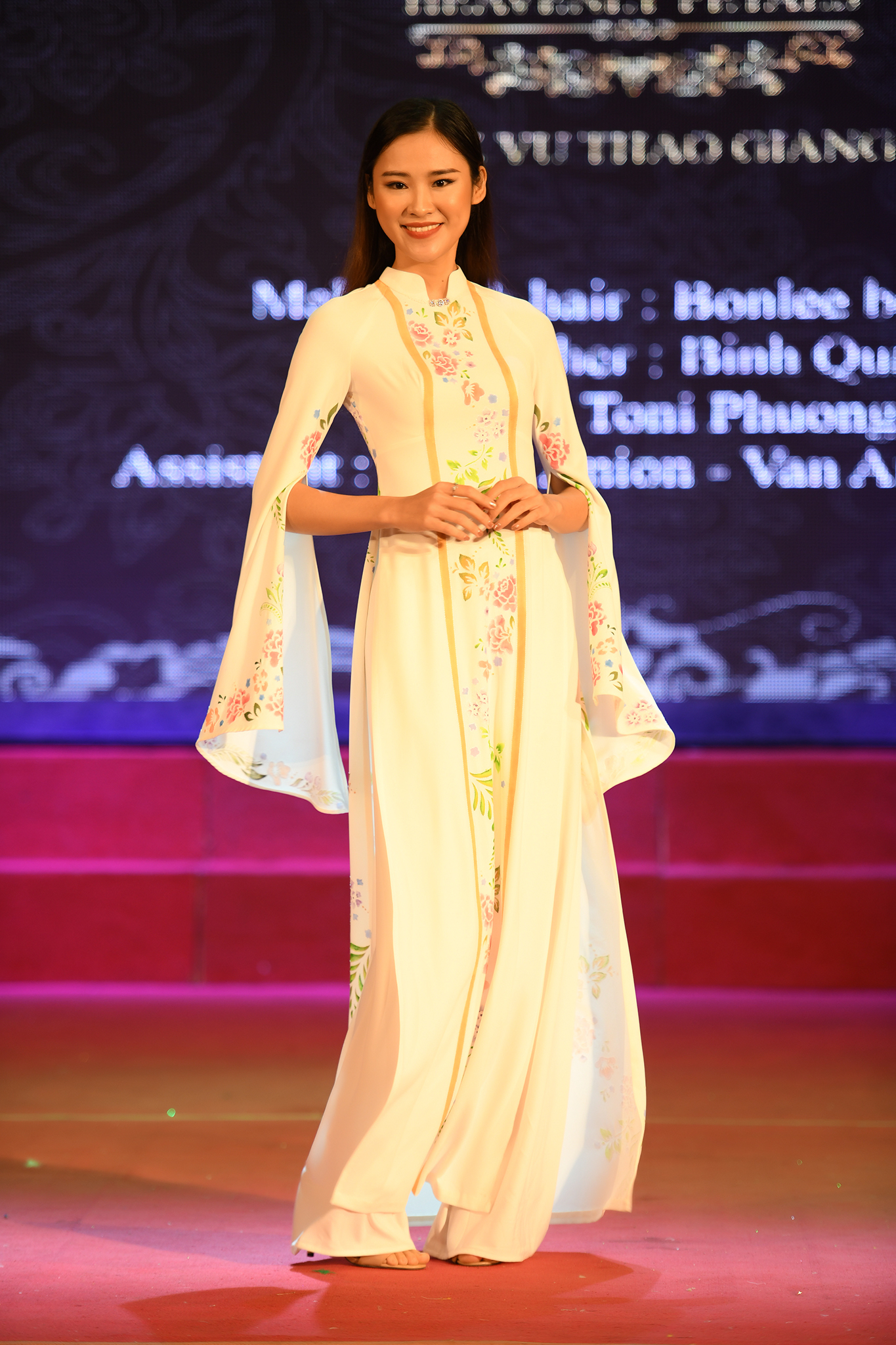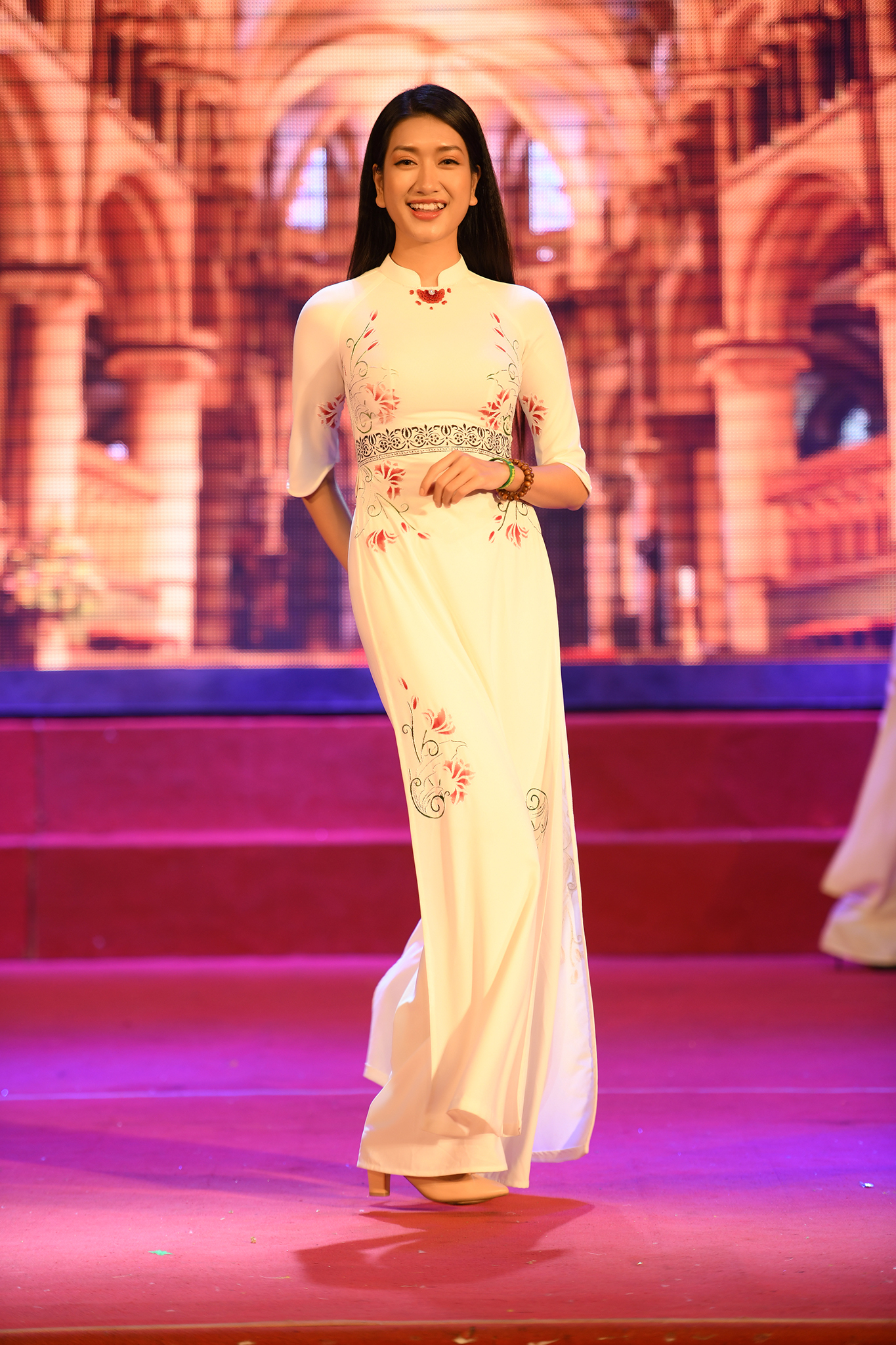 Vừa qua, NTK Đỗ Trịnh Hoài Nam trình diễn mở màn Lễ công bố giải đua xe F1 tại Hà Nội với BST 22 áo dài mang hình quốc kỳ của 22 nước có đường đua F1.