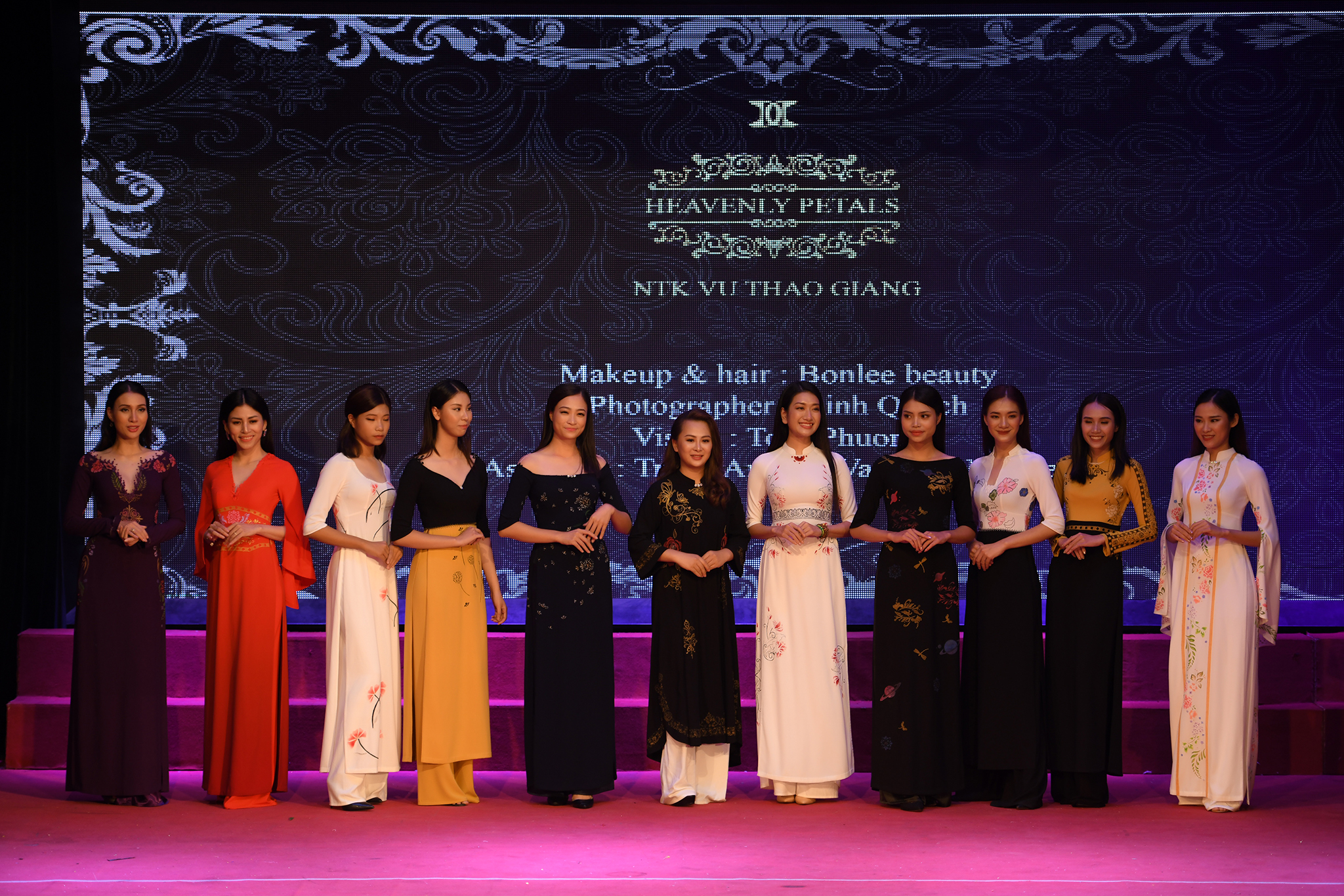 Chia sẻ về ý nghĩa của bộ sưu tập của mình, NTK Thảo Giang cho biết: “Bộ sưu tập “Heavenly Petals - Những cánh hoa trên thiên đường” lấy cảm hứng từ Cung điện mùa hè nước Pháp, mang vẻ đẹp của dòng nước chảy hoà quyện trong ánh mặt trời và những cánh hoa. Quá trình vẽ tay những cánh hoa là một quá trình mà NTK Đỗ Trịnh Hoài Nam đã dày công truyền dạy cho tôi, từ những điều nhỏ cơ bản nhất. Cái tên “Heavenly Petals” bởi vậy được xem như một lời cảm ơn của tôi đối với người thầy trong nghề thời trang của mình”.