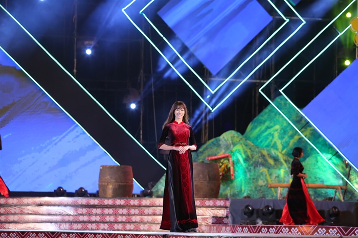 Sắc màu thổ cẩm trên tà áo dài của nhà thiết kế dân tộc Tày