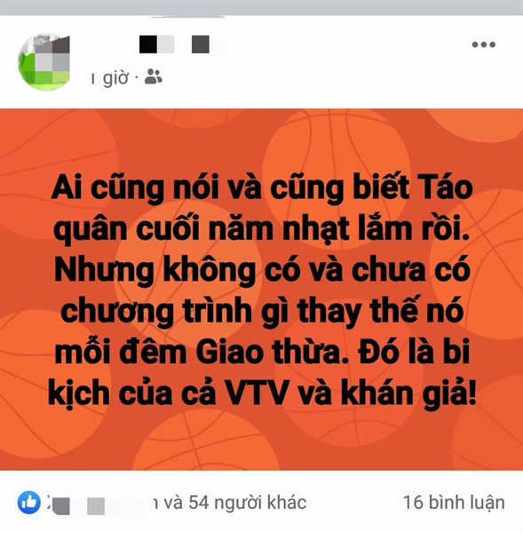 Một người dùng lên tiếng trên mạng xã hội facebook: “Ai cũng nói và cũng biết Táo quân cuối năm nhạt lắm rồi. Nhưng không có và chưa có chương trình gì thay thế nó mỗi đêm Giao thừa. Đó là bi kịch của cả VTV và khán giả”.