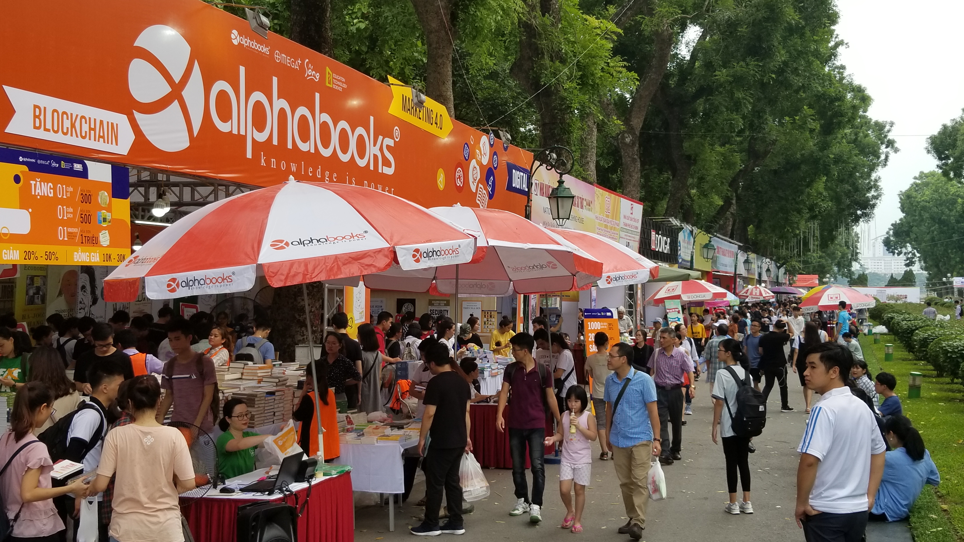 Hội sách mùa thu tại Công viên Thống Nhất Hà Nội thu hút đông đảo độc giả với sự thamgia của hơn 50 NXB, Nhà sách, phát hành sách