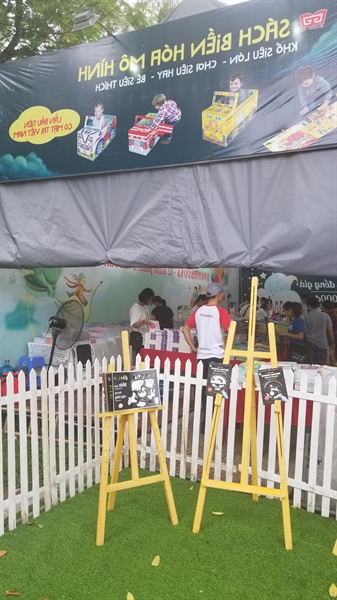 Gian hàng của NXB Kim Đồng vẫn luôn có màu sắc trẻ trung, khác lạ thu hút đông đảo bạn trẻ