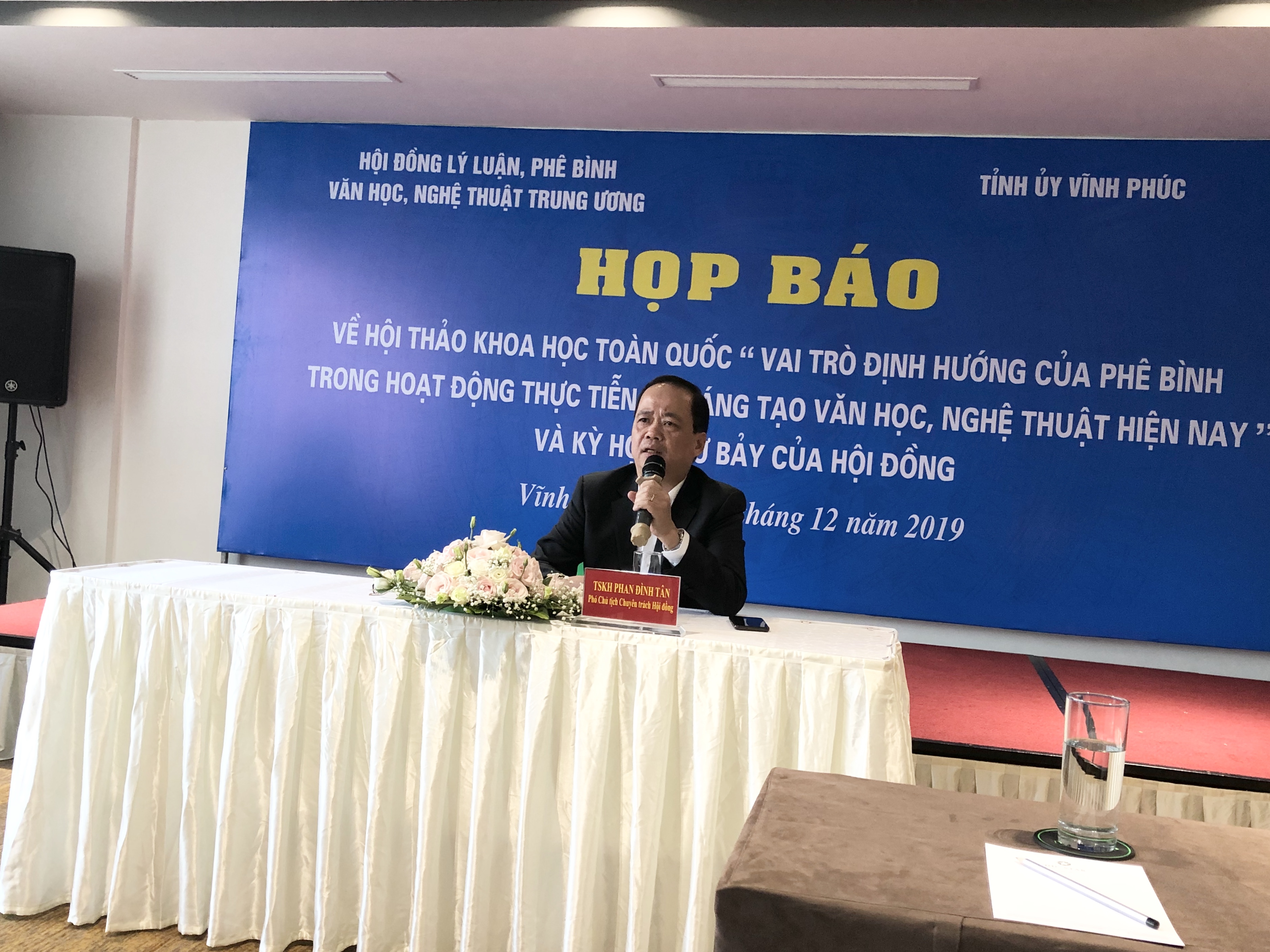 TSKH Phan Đình Tân, Phó Chủ tịch chuyên trách Hội đồng Lý luận, phê bình văn học, nghệ thuật Trung ương thông tin đến báo chí