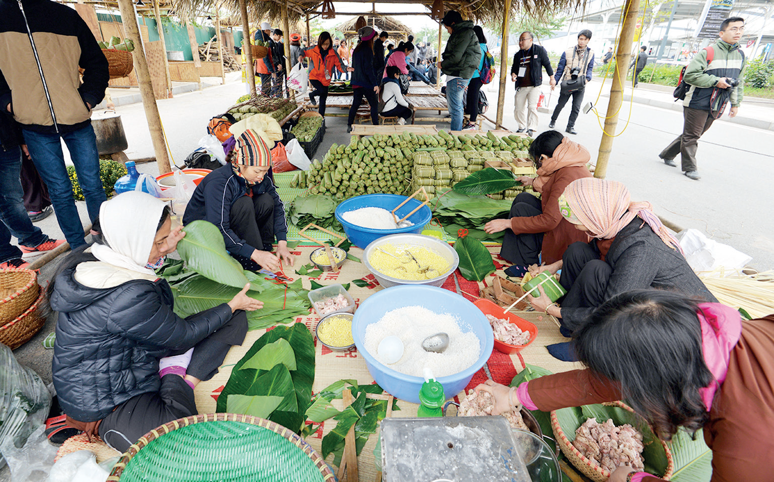 1. Những ngày giáp Tết, người lớn, trẻ con ai cũng háo hức đi chợ Tết. Có khi chẳng mua bán gì cũng đi, chỉ để xem, để ngắm. Xem hoa khoe sắc, xem tranh Tết, xem hàng Tết đủ màu, như cuộc sống đang rét mướt bỗng bừng lên náo nức. Phiên chợ cuối năm ở đâu cũng đông như hội. Người giàu đi chợ Tết để mua sắm khoe giàu, người nghèo đi chợ Tết để khoe lòng hiếu thảo với ông bà tiên tổ. Trẻ con theo mẹ đi chợ Tết, được mẹ mua cho con gà đất, cây kèn, hoặc xâu pháo tép là mừng rơn, để rồi nhớ mãi trong đời.