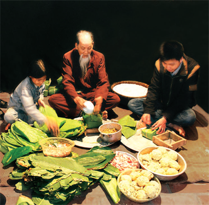 Gói bánh chưng. Ảnh: Mai Quốc Cách