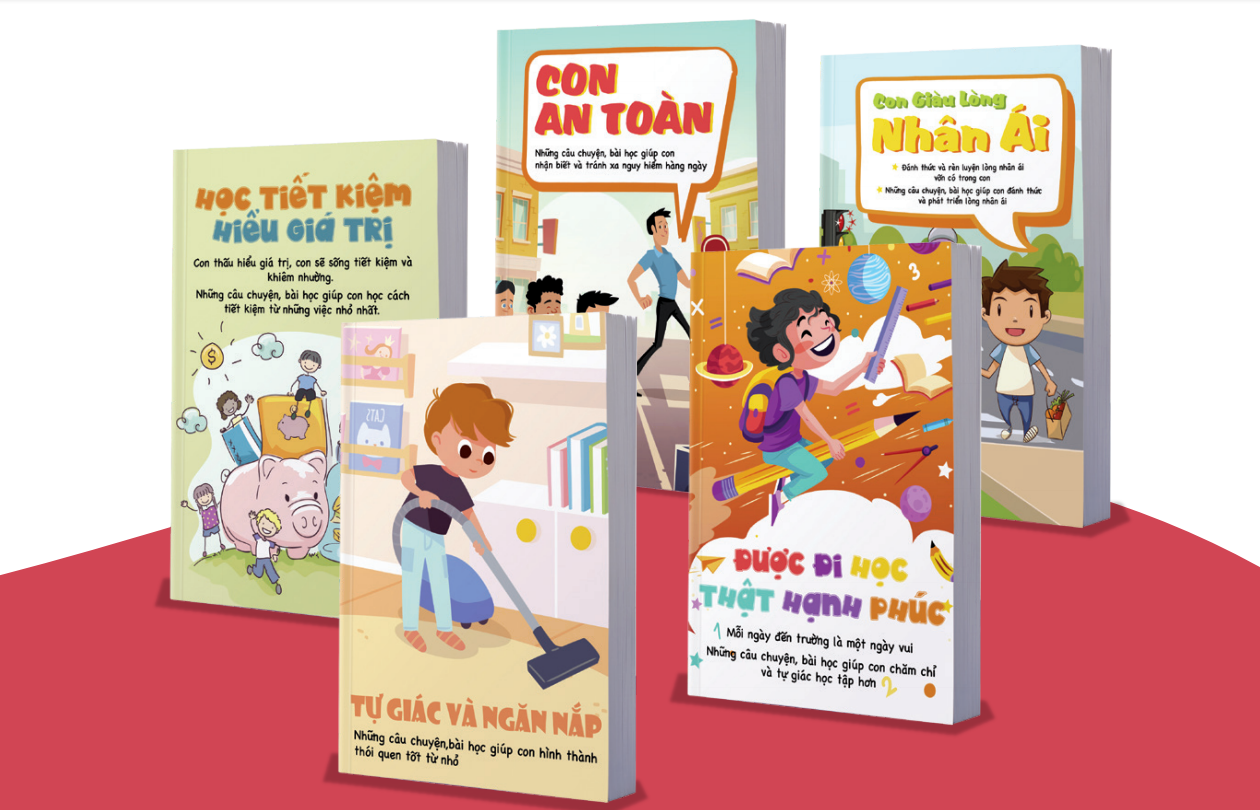 Bộ sản phẩm đầu tiên tập trung ở 5 chủ đề: Lòng nhân ái: giúp trẻ quan tâm, yêu thương và chia sẻ với bạn bè và những hoàn cảnh kém may mắn hơn mình; Được đi học, thật hạnh phúc: là những câu chuyện trường lớp, bạn bè, thầy cô… để trẻ cảm nhận được mỗi ngày đến trường là một niềm vui; Học tiết kiệm, hiểu giá trị: giúp trẻ nhận thức giá trị của mỗi món đồ vật, những tiện ích mà mình sử dụng hàng ngày để từ đó yêu quý chúng hơn, sử dụng một cách hữu ích hơn; Tự giác và ngăn nắp: Đây là những bài học để trẻ, nhất là ở độ tuổi mầm non hình thành tính tự giác, là nền tảng tốt cho việc học tập sau này; Con an toàn: là những kỹ năng giúp trẻ tự phòng tránh những hiểm nguy có thể xảy đến bất cứ lúc nào.