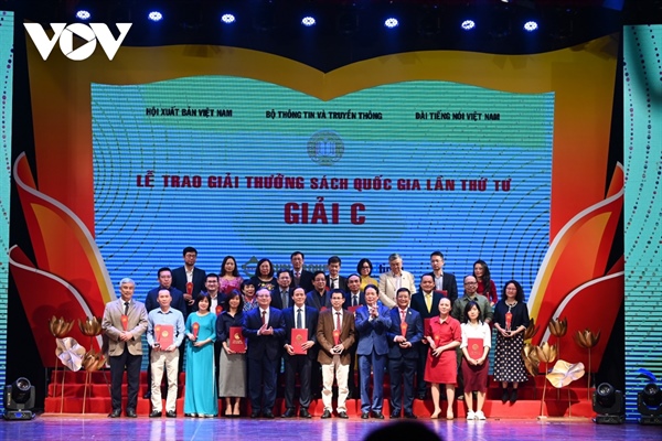 Ông Đỗ Tiến Sỹ, Tổng Giám đốc Đài Tiếng nói Việt Nam và ông Hoàng Vĩnh Bảo, Chủ tịch Hội Xuất bản Việt Nam, Chủ tịch Hội đồng Giải thưởng Sách Quốc gia lần thứ tư, trao 13 giải C - giải thưởng Sách Quốc gia lần thứ tư.