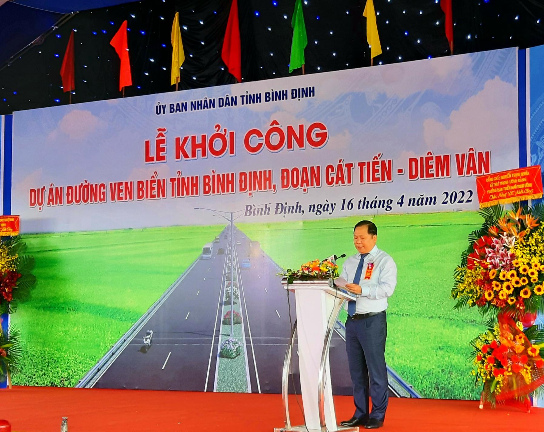 Phát biểu tại lễ khởi công, ông Nguyễn Phi Long, Chủ tịch UBND tỉnh cho biết, trong thời gian qua, bằng nguồn vốn ngân sách tỉnh và ngân sách Trung ương hỗ trợ, tỉnh Bình Định đã triển khai đầu tư xây dựng hoàn thành một số đoạn tuyến của đường ven biển từ Tam Quan - thị xã Hoài Nhơn đến Cát Tiến - huyện Phù Cát, các đoạn còn lại từ Cát Tiến - Diêm Vân (huyện Tuy Phước) - Quốc lộ 1D (thành phố Quy Nhơn) chưa được triển khai xây dựng. Do đó, để tiếp tục kết nối hạ tầng giao thông đồng bộ đoạn từ Tam Quan đến Cát Tiến, thì việc đầu tư xây dựng đường ven biển tỉnh Bình Định đoạn từ Cát Tiến - Diêm Vân trong điều kiện hiện nay là rất cần thiết và cấp bách, góp phần hoàn thiện tuyến đường ven biển tỉnh Bình Định thuộc hệ thống đường ven biển Quốc gia.