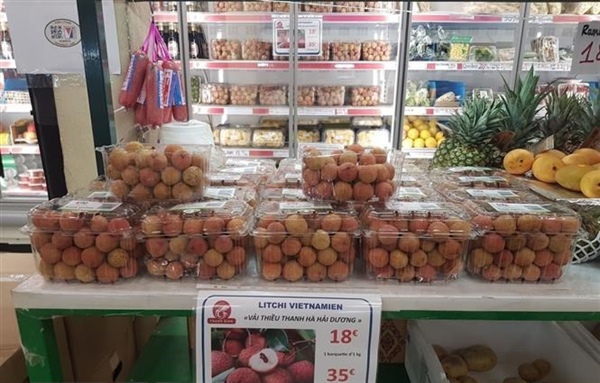 Vải thiều Thanh Hà được bán tại một siêu thị ở Paris (Pháp)