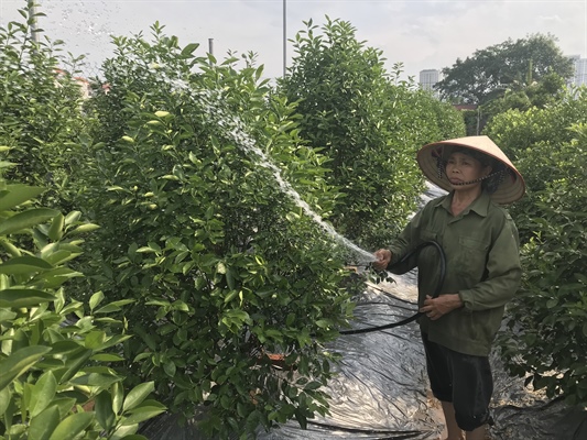 Dưới cái nắng 40 độ, người nông dân vẫn tích cực chăm sóc cho cây quất