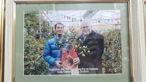 Nghệ nhân Bùi Thế Mạnh tặng quất thế cho Đại sứ Australia Craig Chittick