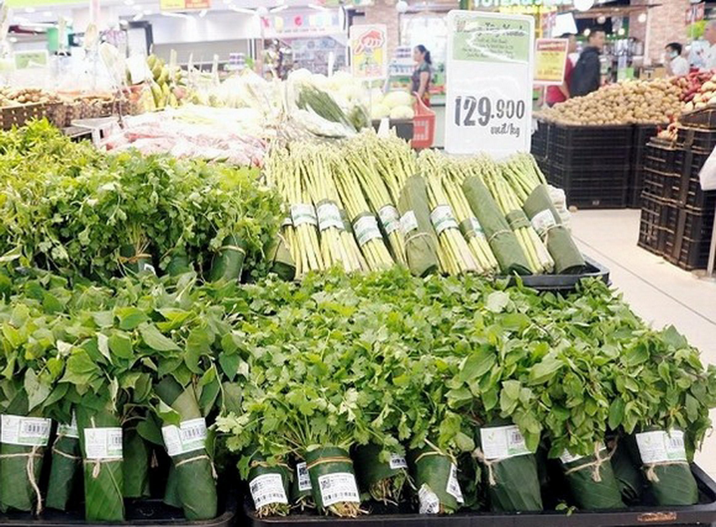 Nhiều siêu thị đã sử dụng lá chuối để gói rau xanh
